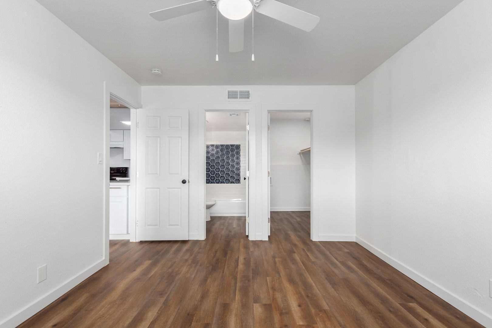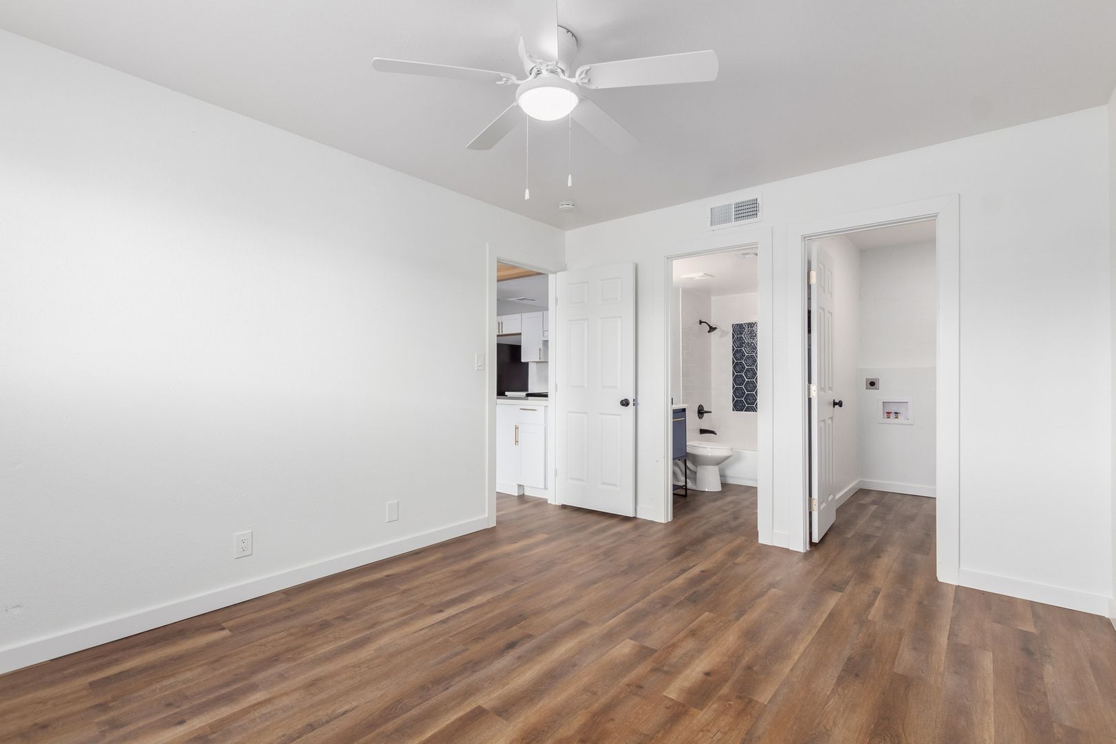 Vinyl plank flooring throughout unit