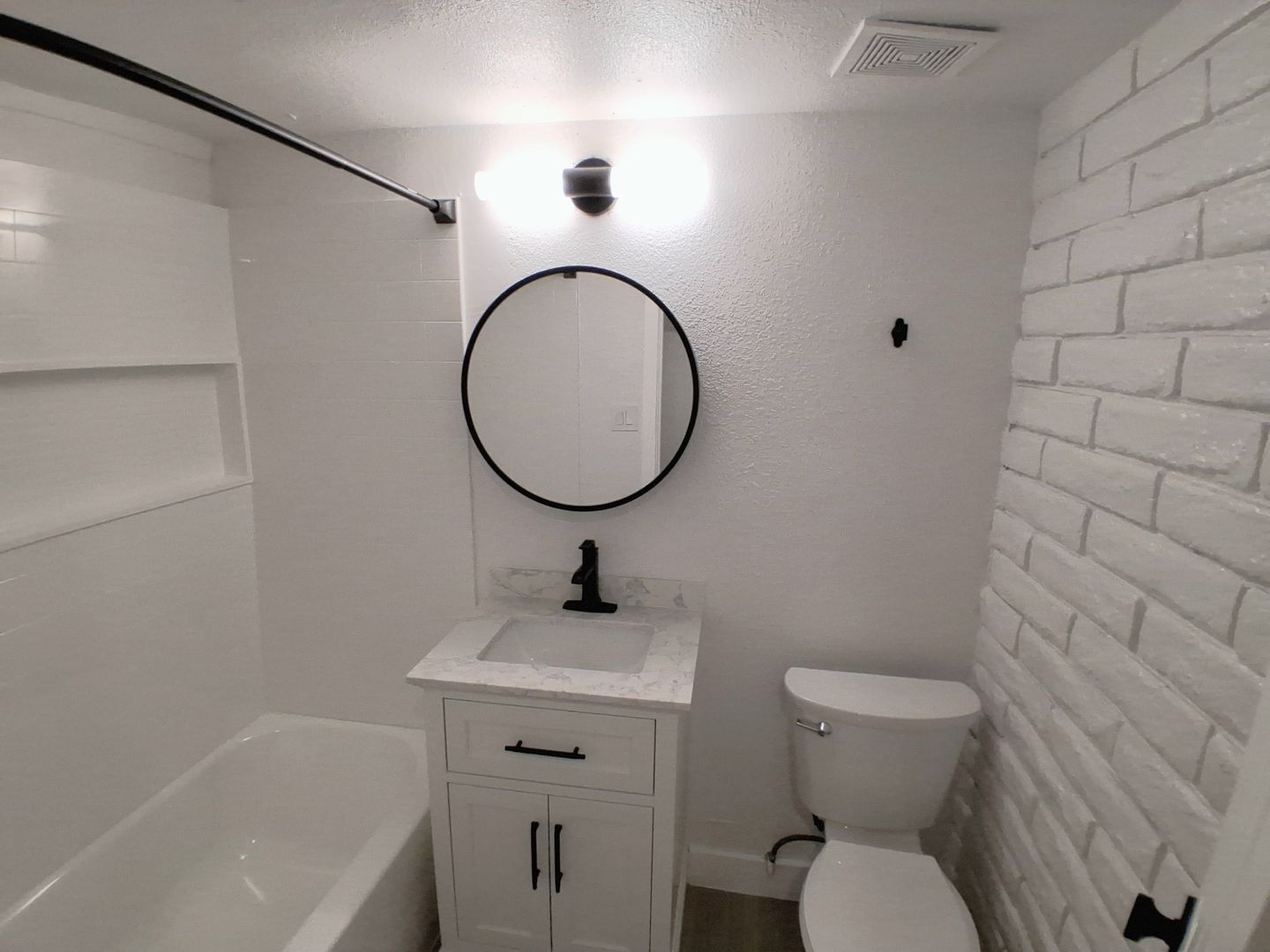 New modern vanity area with mirror