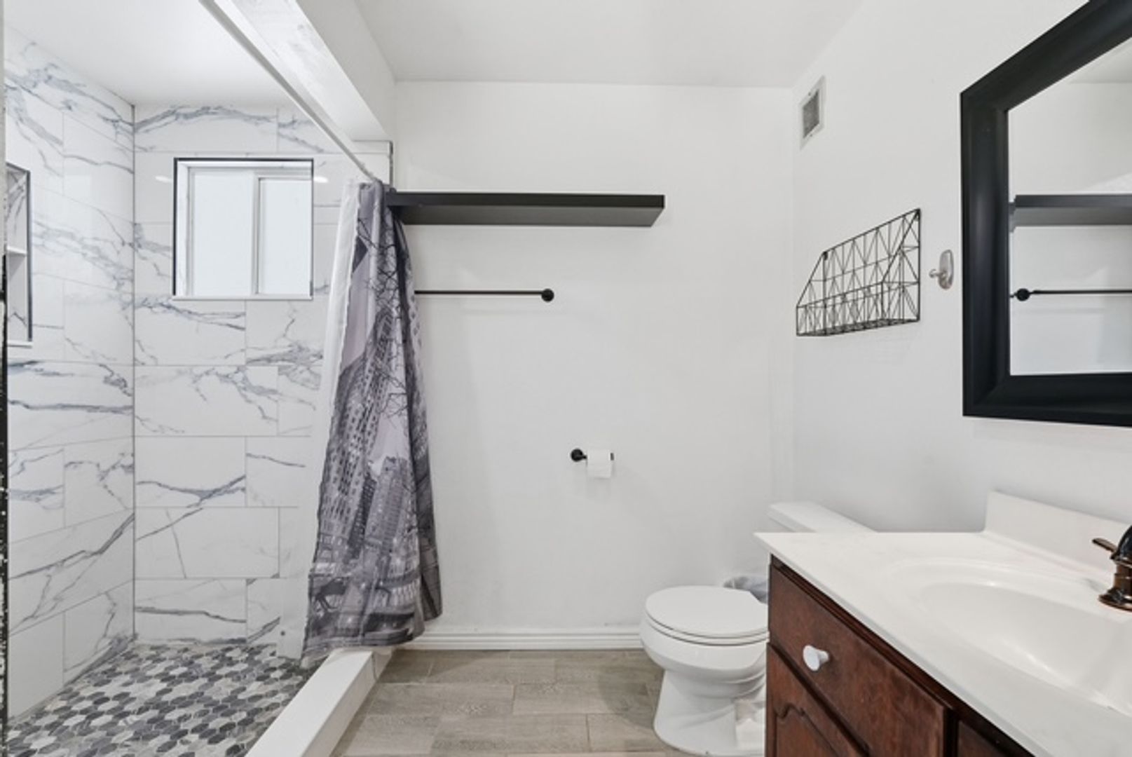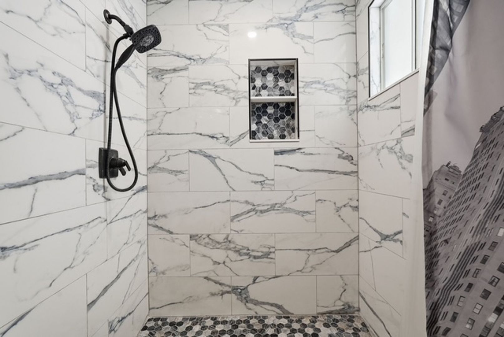 Tile shower with vanity