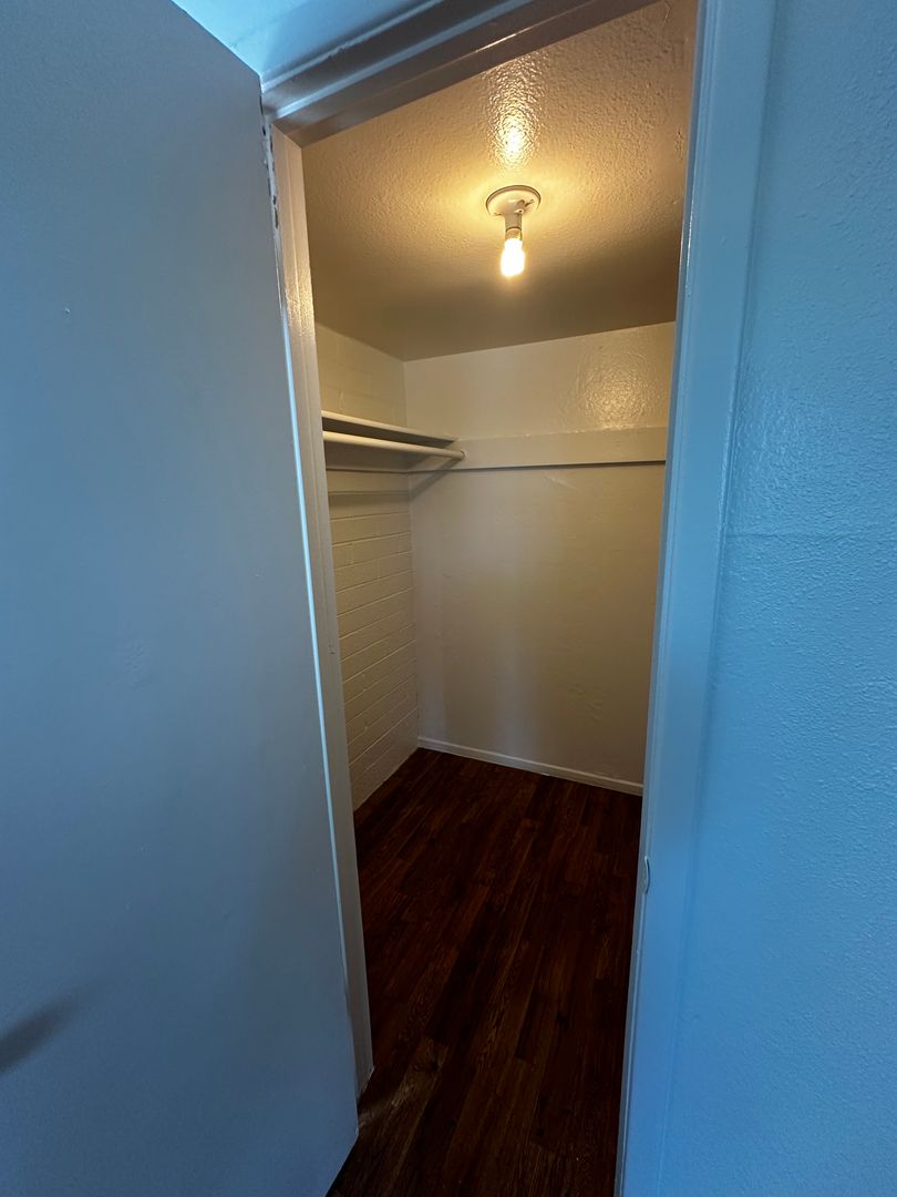 Studio apartment with walk-in closet