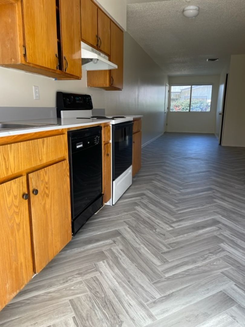 Refrigerator, range, and dishwasher in-unit