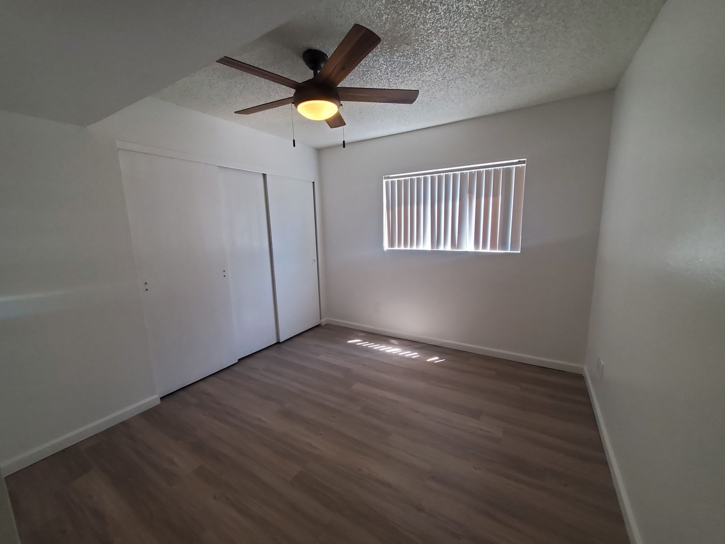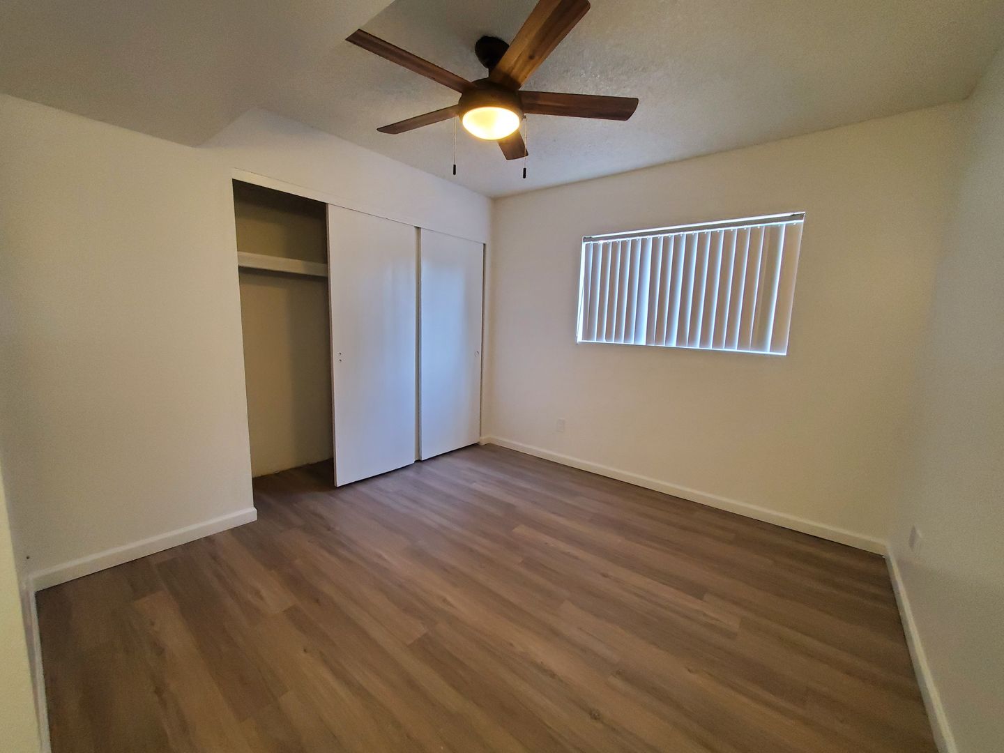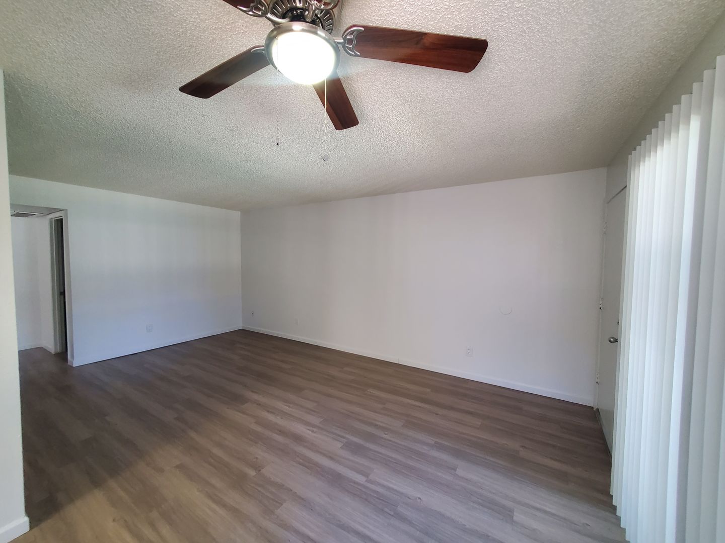Faux wood flooring throughout