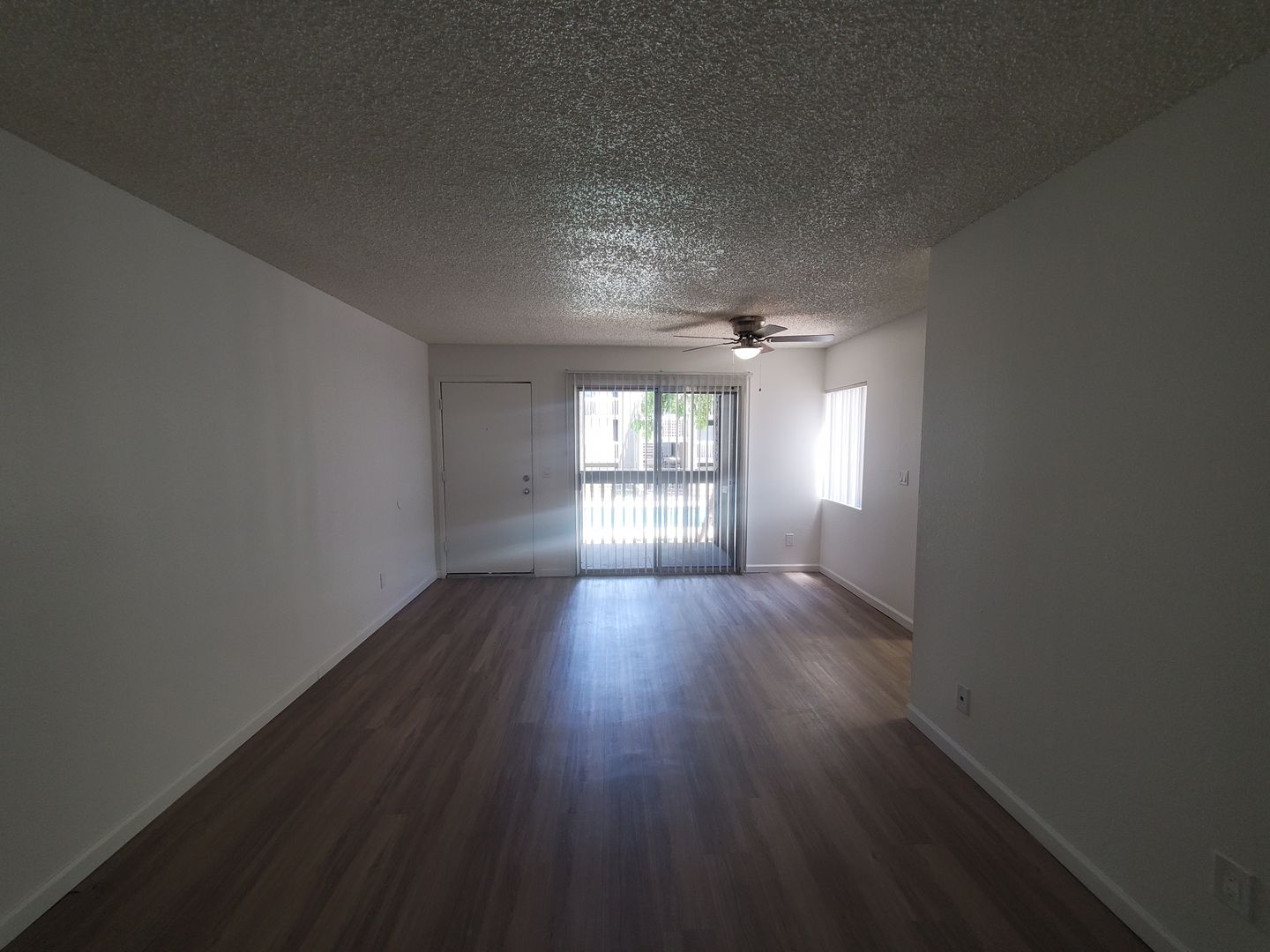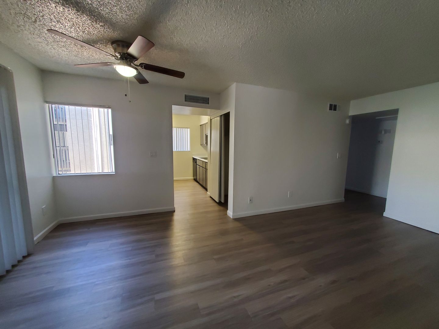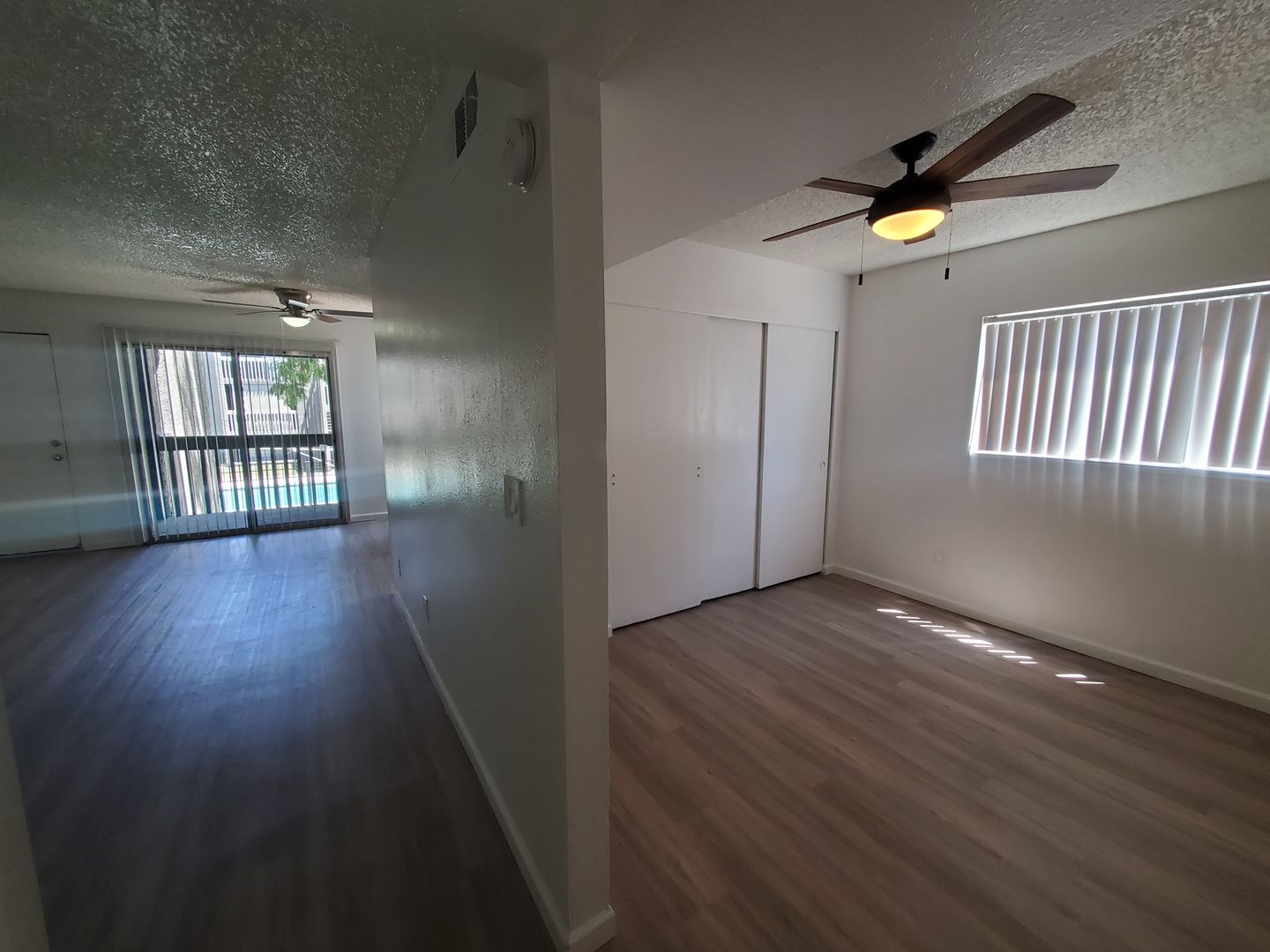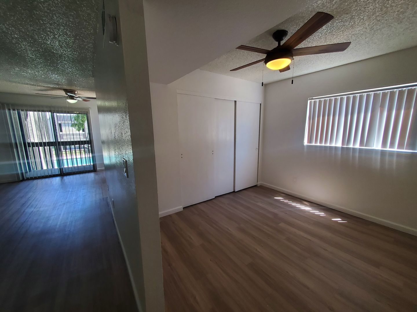 Faux wood flooring throughout
