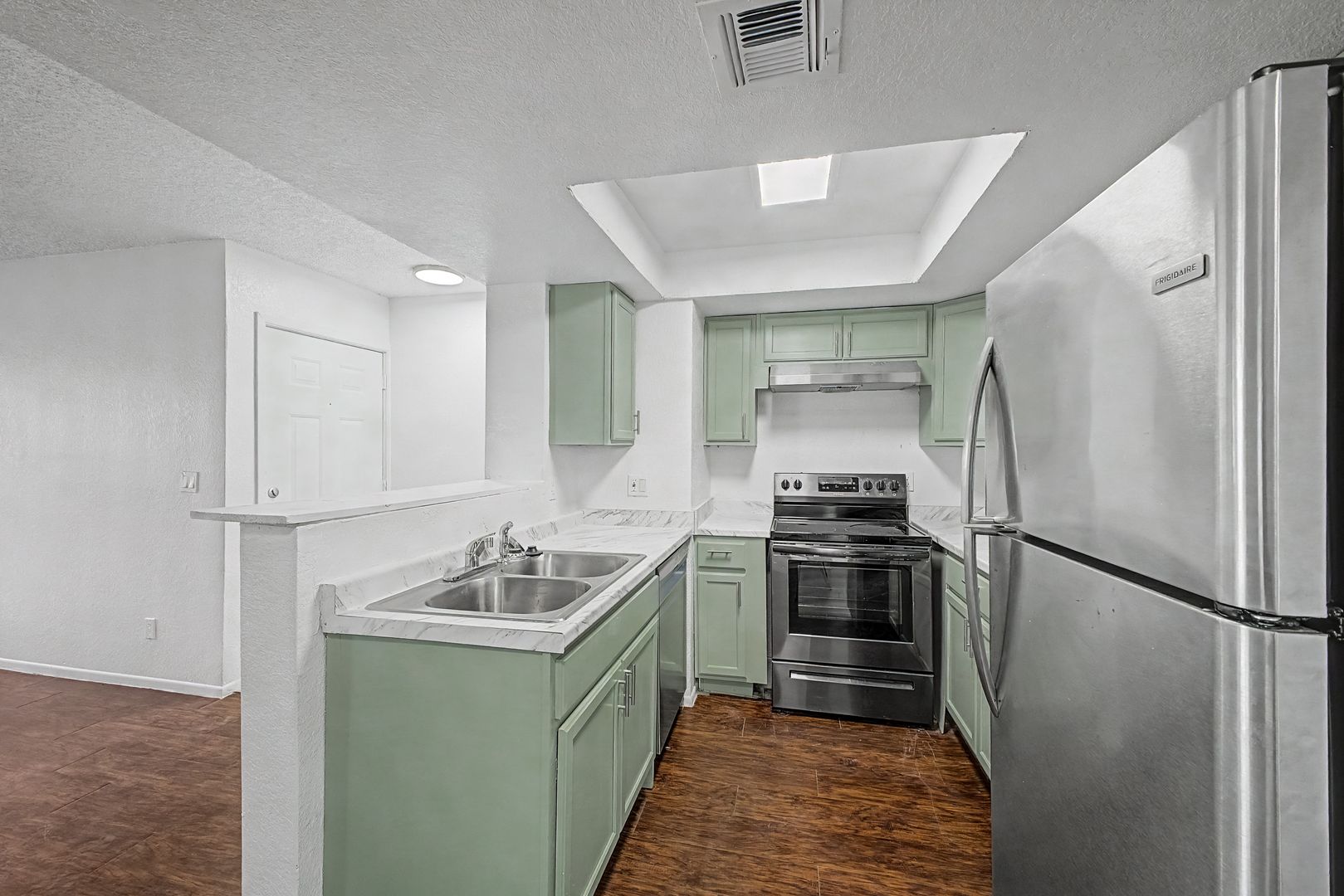 Kitchen open to living area