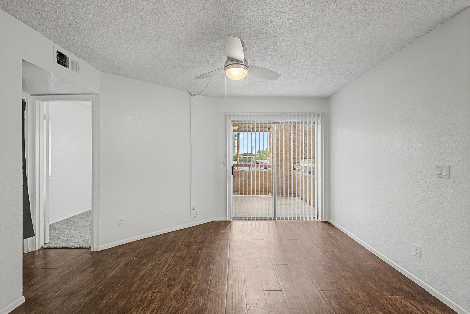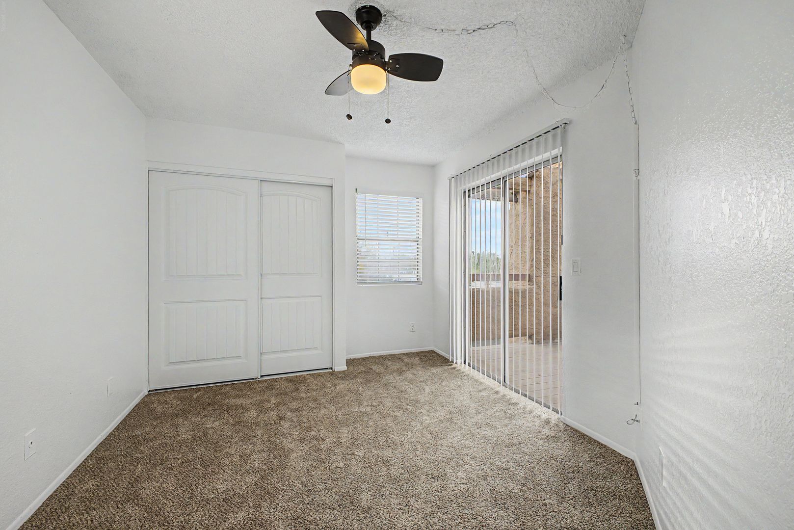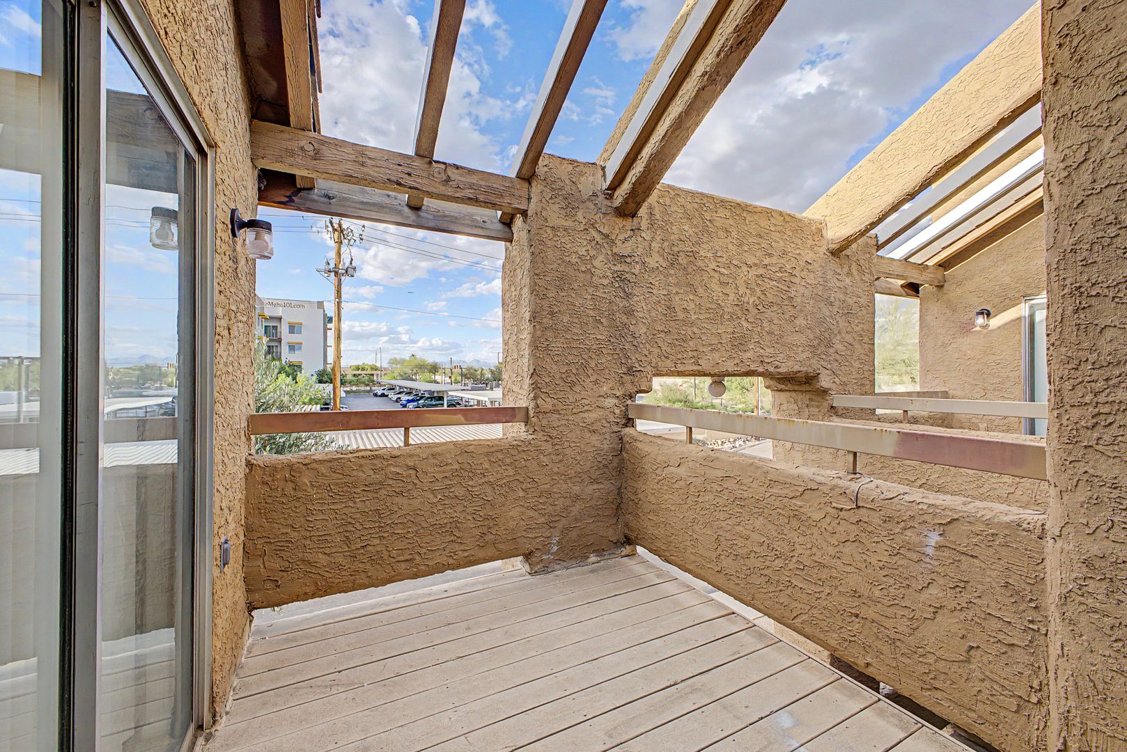 Large walk out patio or balcony with 2 sliders