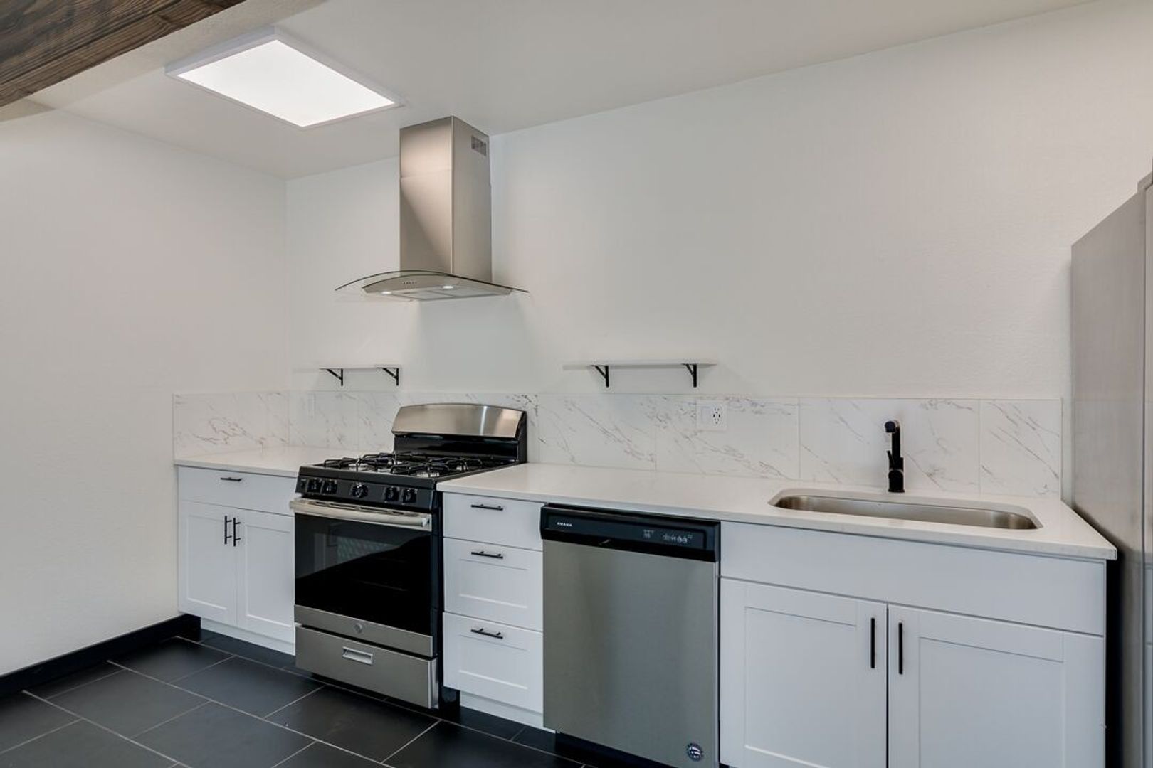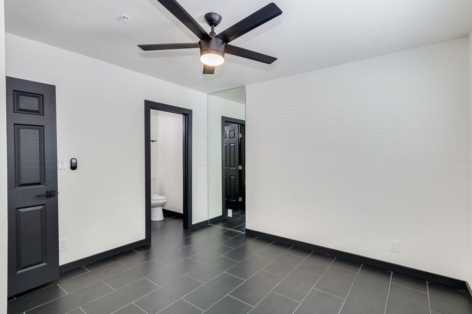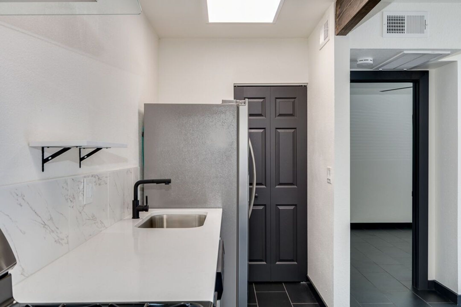 Black tile throughout apartment