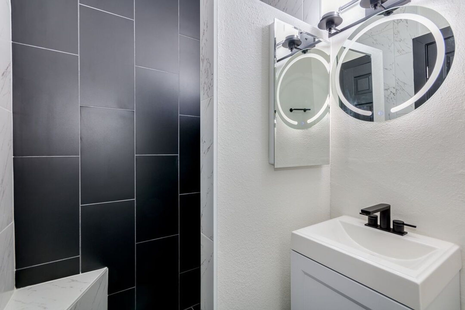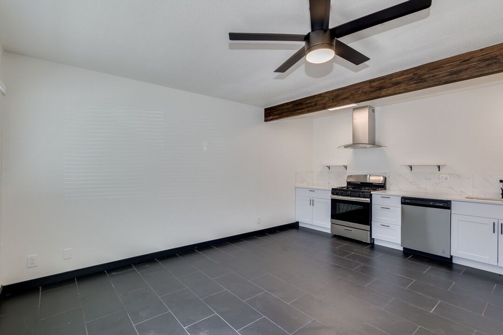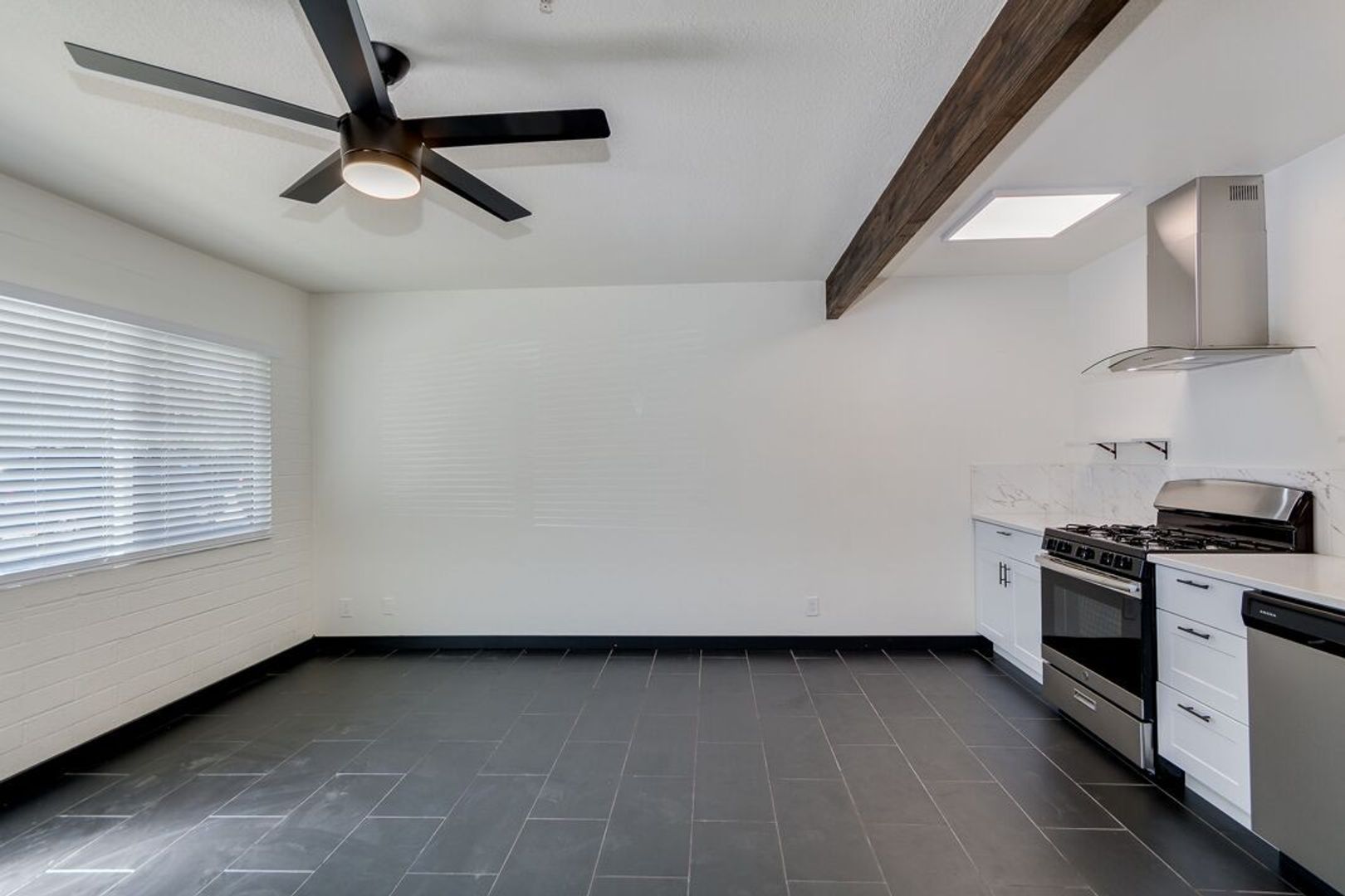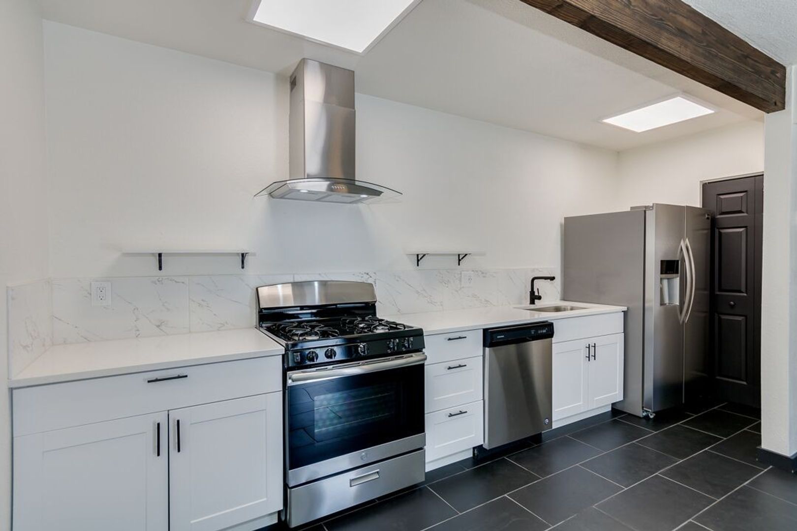 Black tile throughout apartment