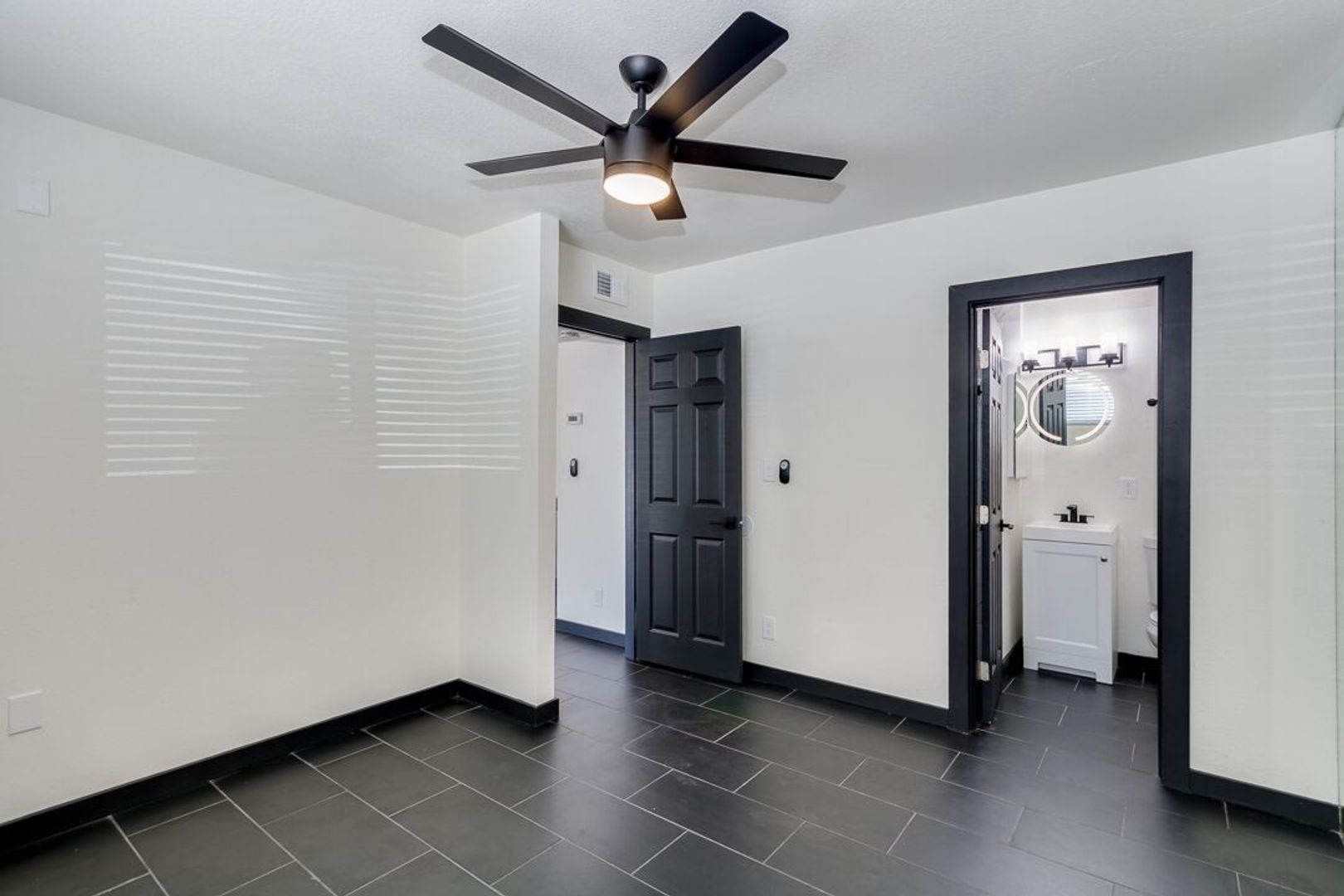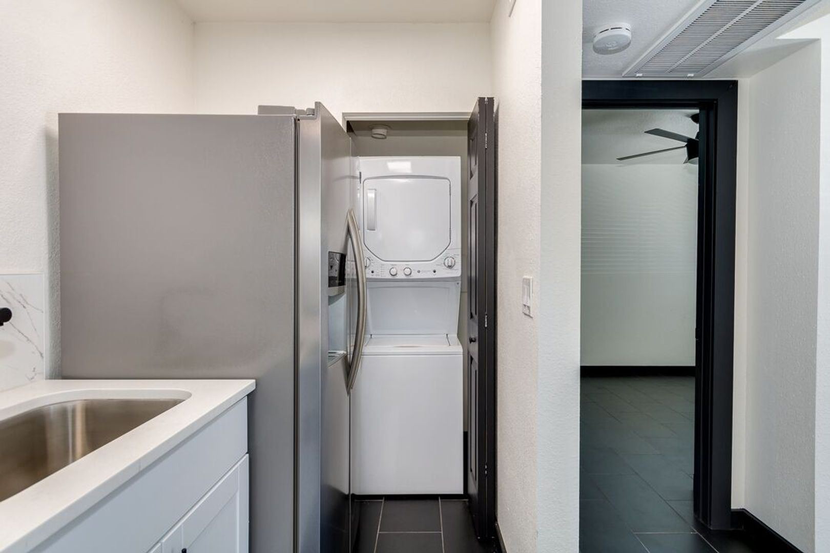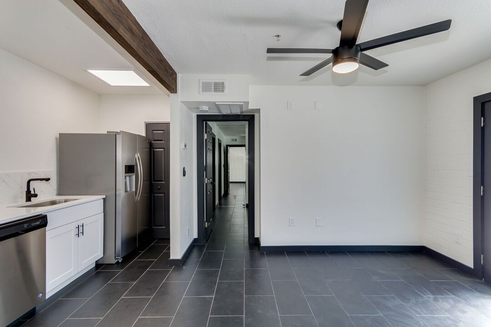 Black tile throughout apartment