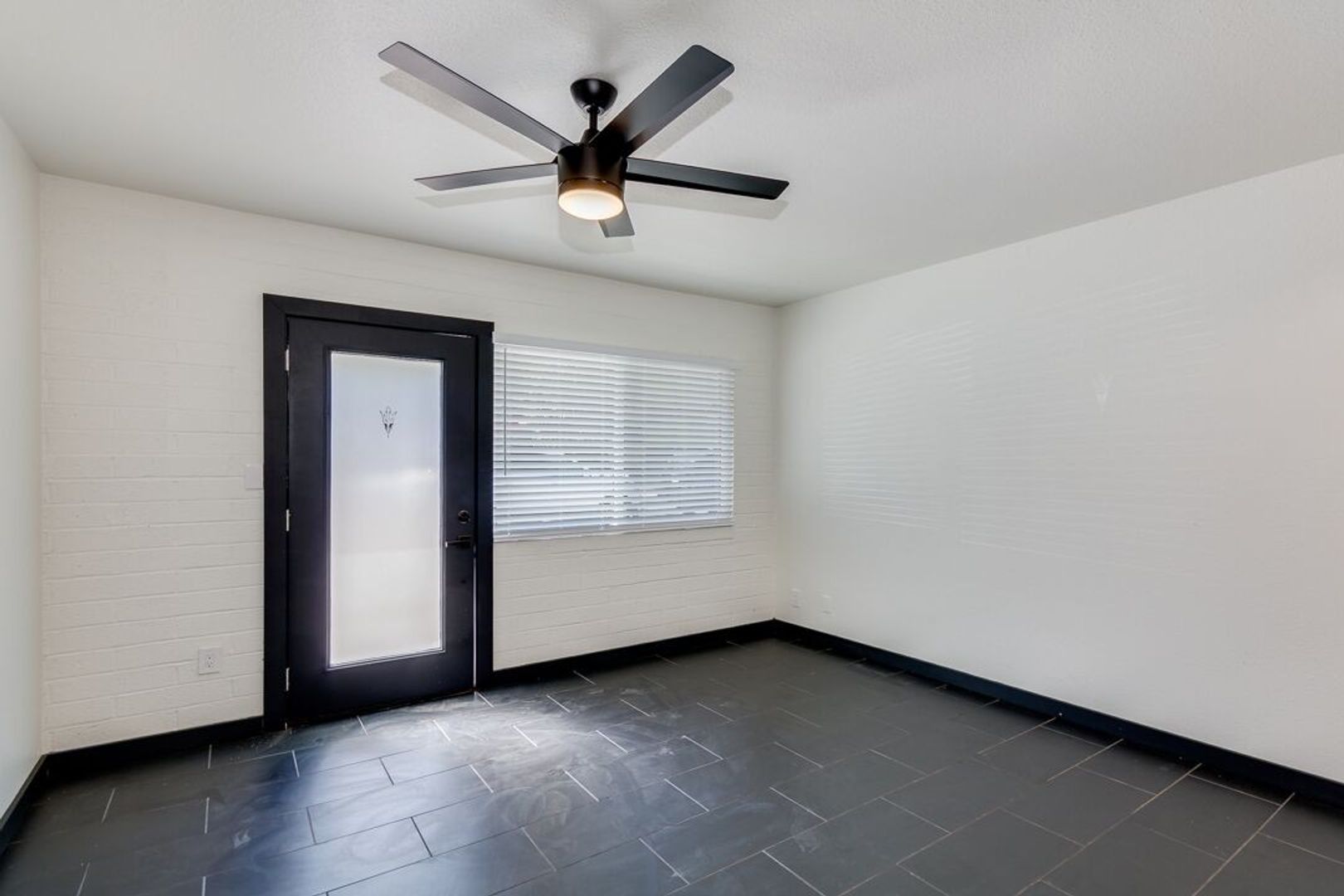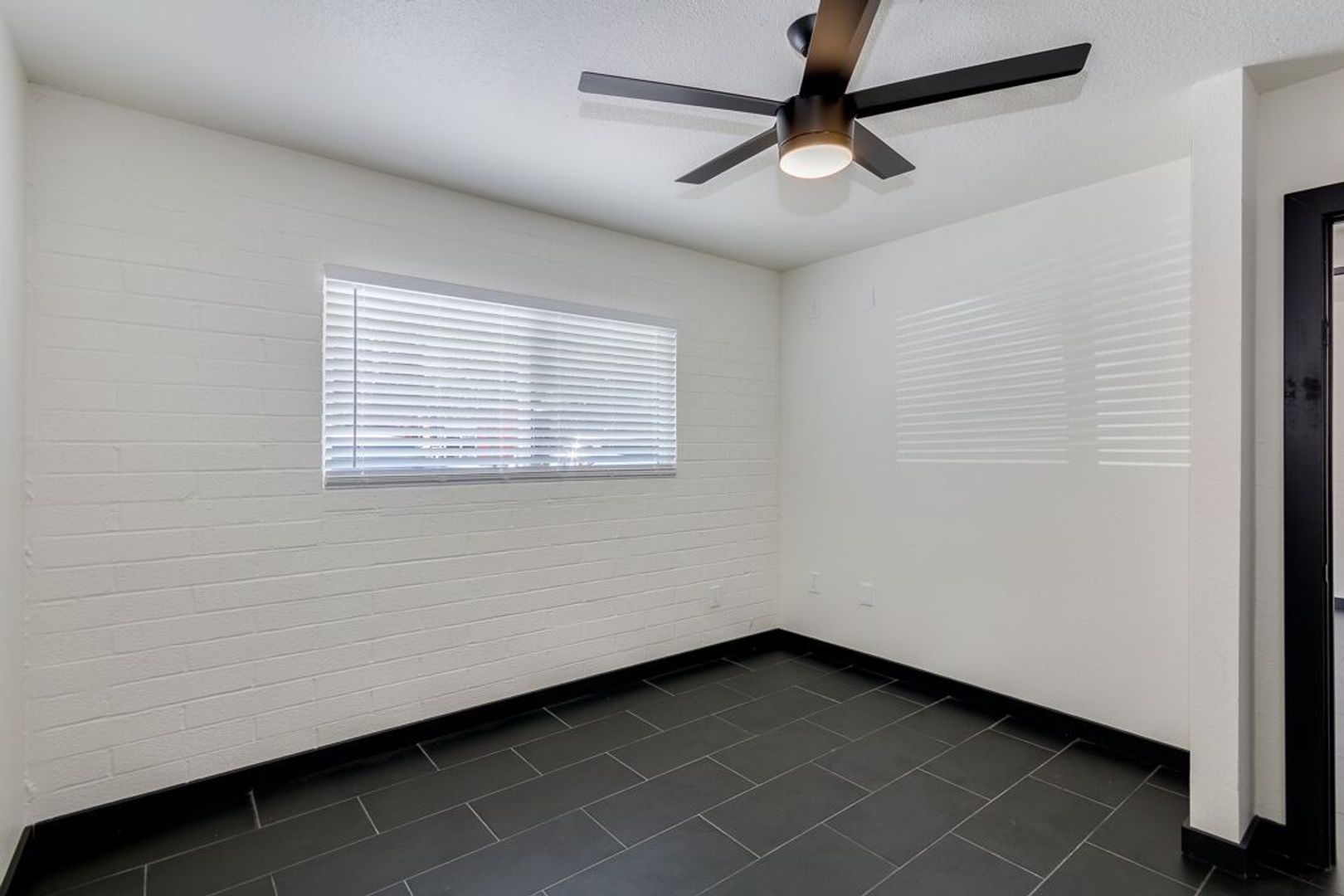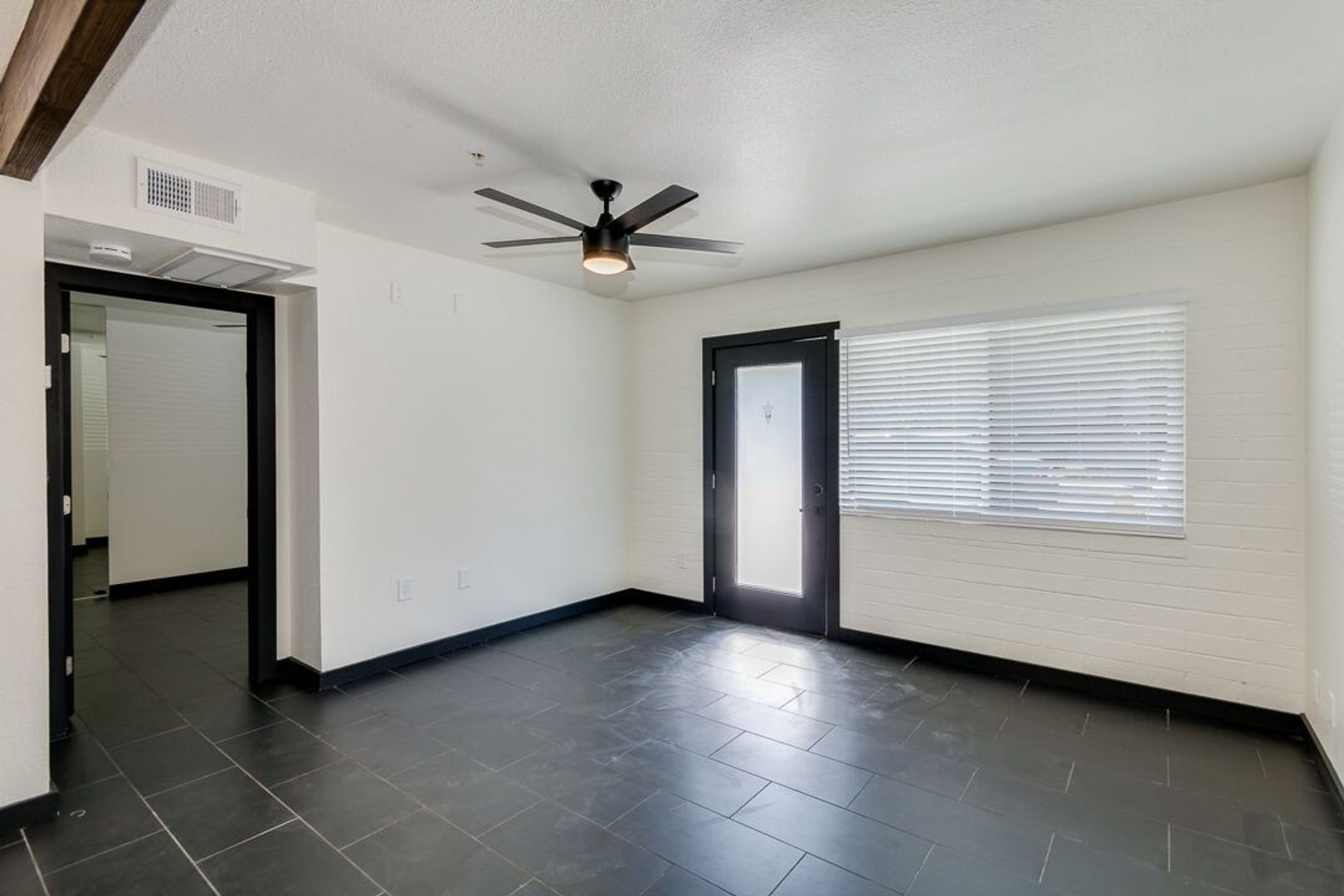 Black tile throughout apartment