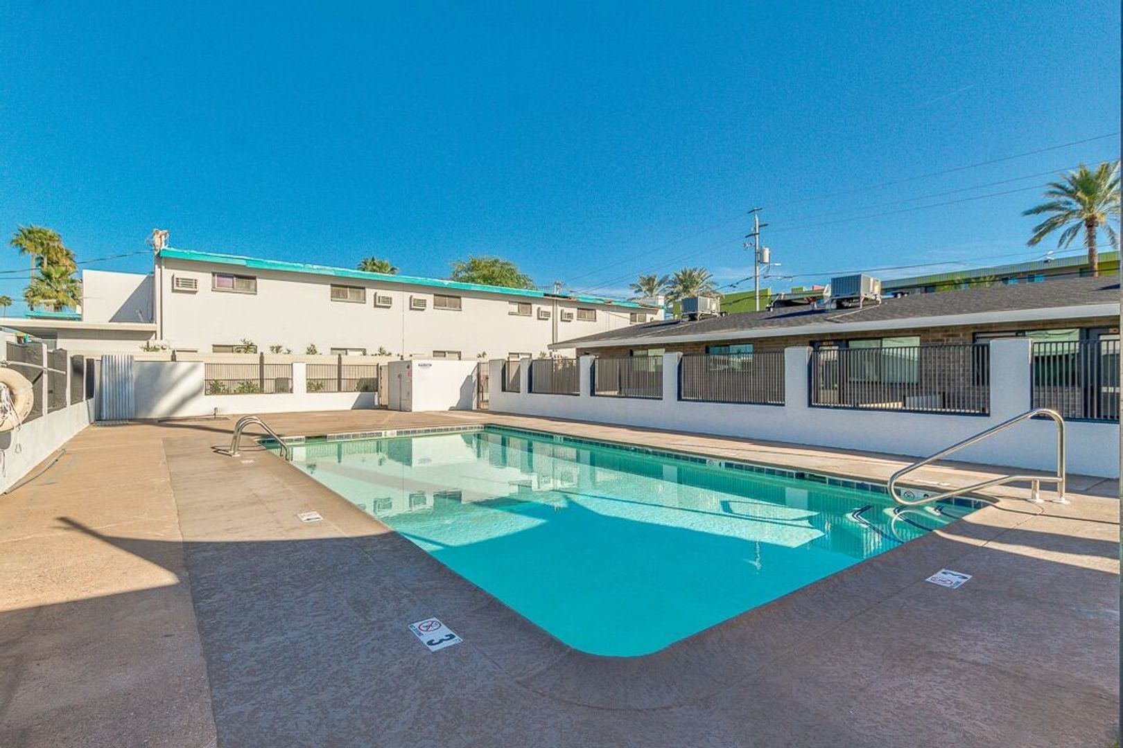 Sparkling pool with resort style furniture